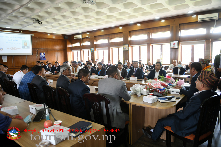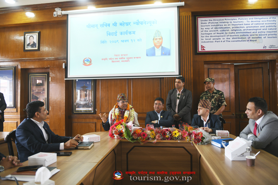 संस्कृति, पर्यटन तथा नागरिक उड्डयन मन्त्रालयका श्रीमान् सचिव श्री महेश्वर न्याैपानेज्यूको विदार्इ कार्यक्रमका तस्वीरहरु(२०७९-०४-१२)