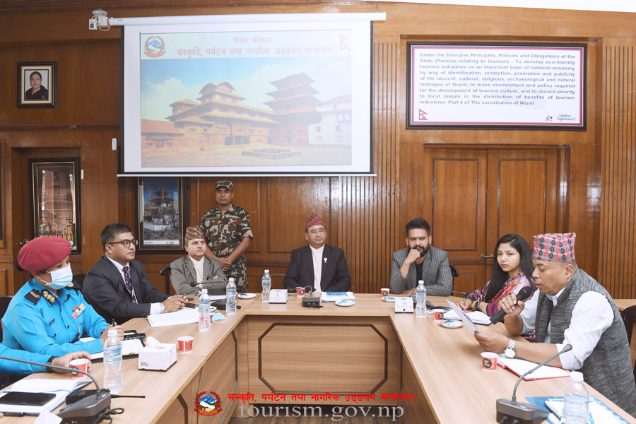 संस्कृति, पर्यटन तथा नागरिक उड्डयन मन्त्री माननीय जीवनराम श्रेष्ठज्यूज्यूको संयोजकत्वमा इन्द्रजात्रा पर्व मनाउने सम्बन्धमा स्थानीय र सरोकारवाला संस्थाहरुसँग भएको छलफल कार्यक्रमका तस्वीरहरु (२०७९-०५-०१)