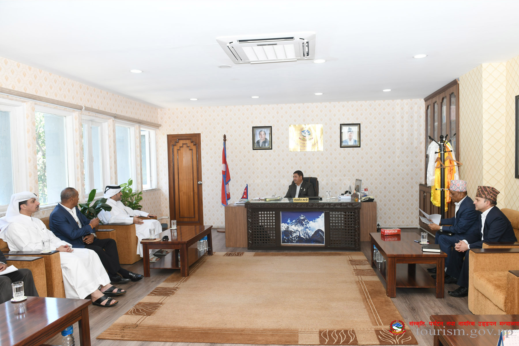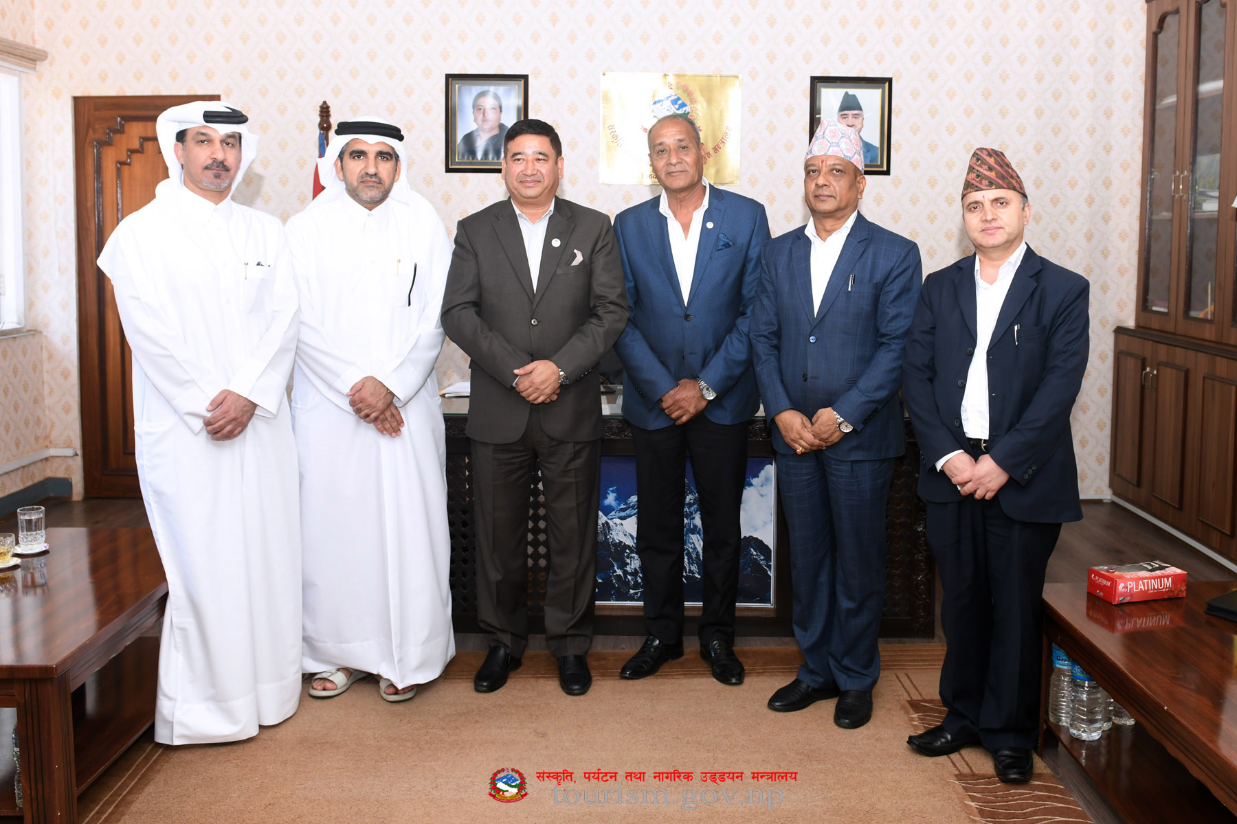 संस्कृति, पर्यटन तथा नागरिक उड्डयन मन्त्री माननीय जीवनराम श्रेष्ठसँग नेपालका लागि Quatar का राजदूत Mr. Yosuf Bin Mohamed Al- Hail को शिष्टाचार भेटका तस्वीरहरु (२०७९-०५-१३)