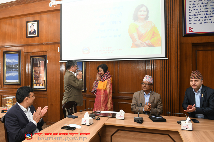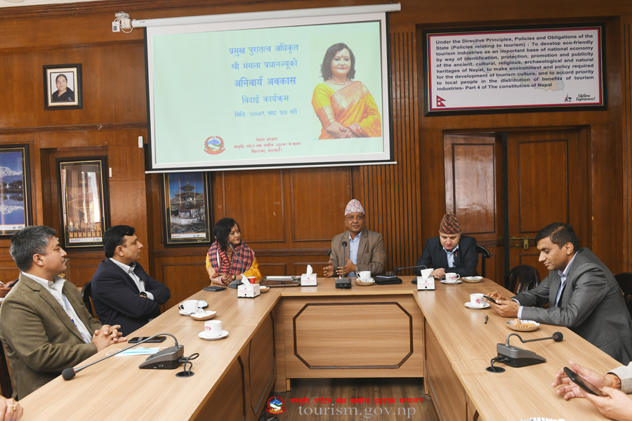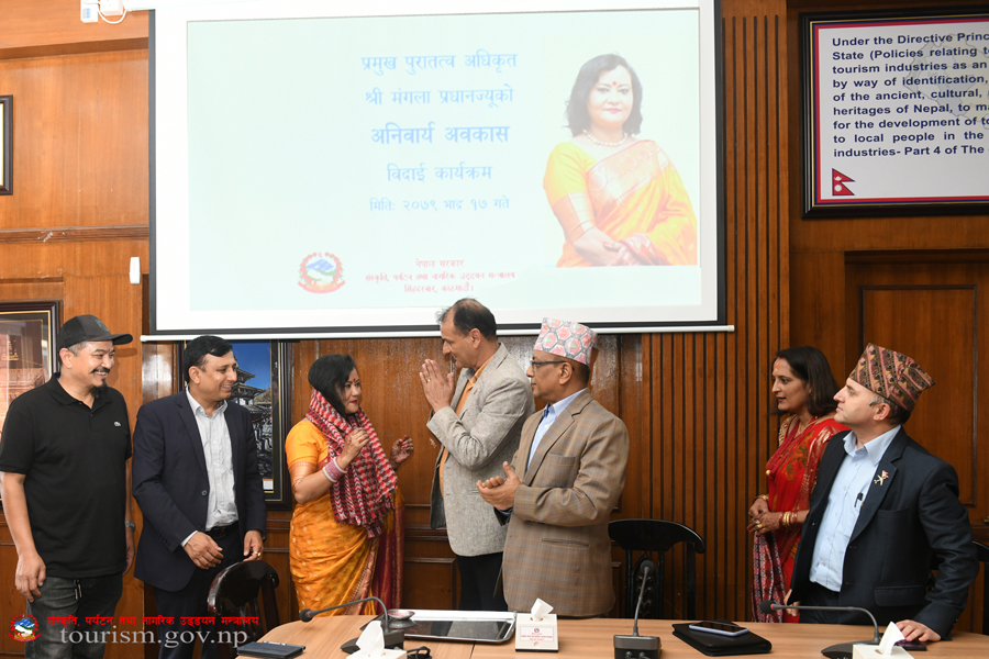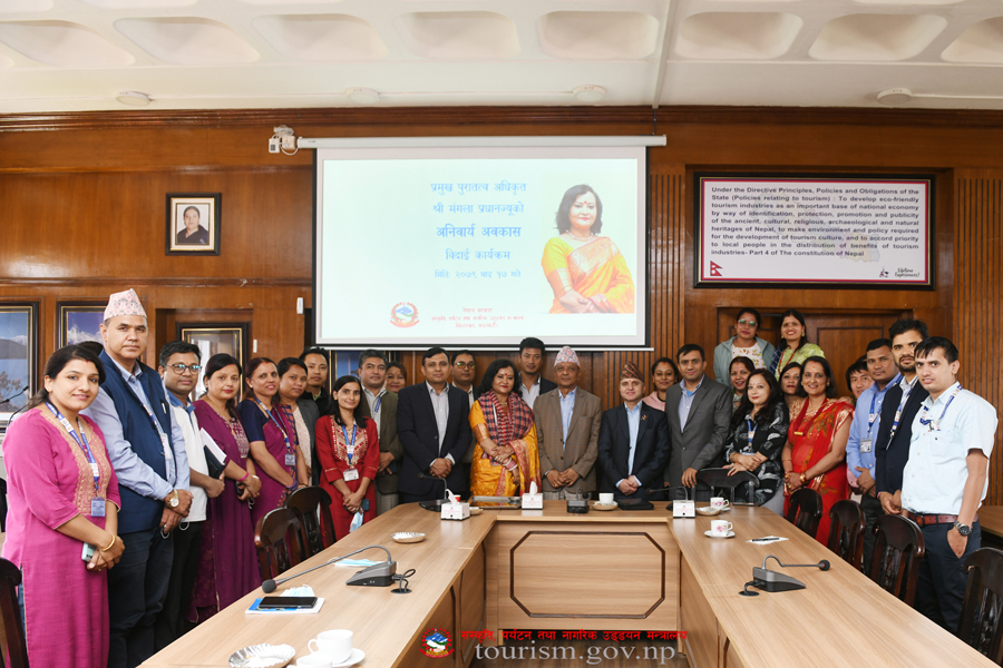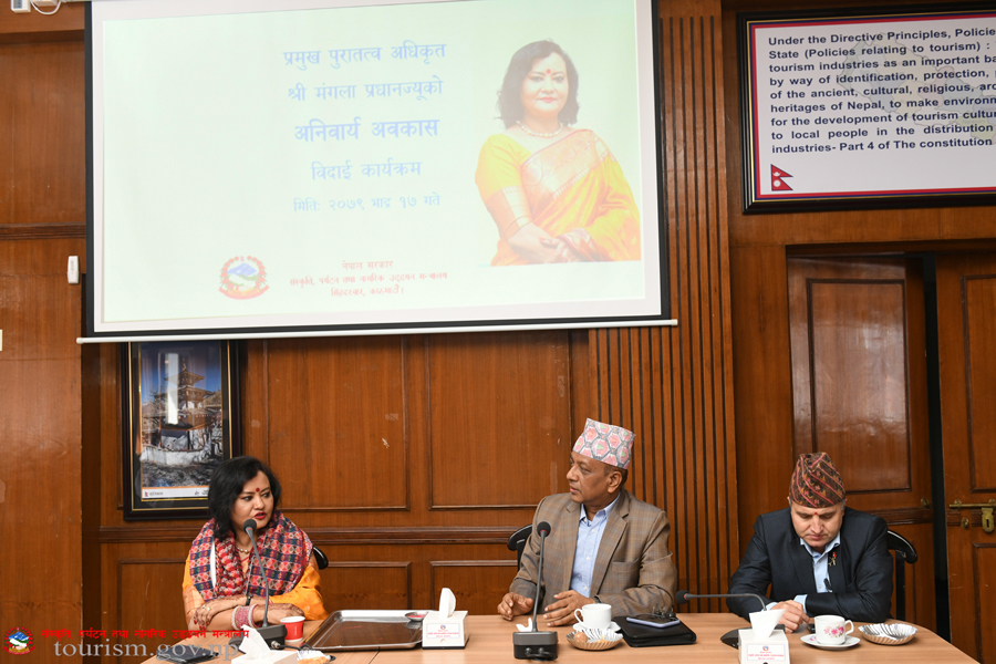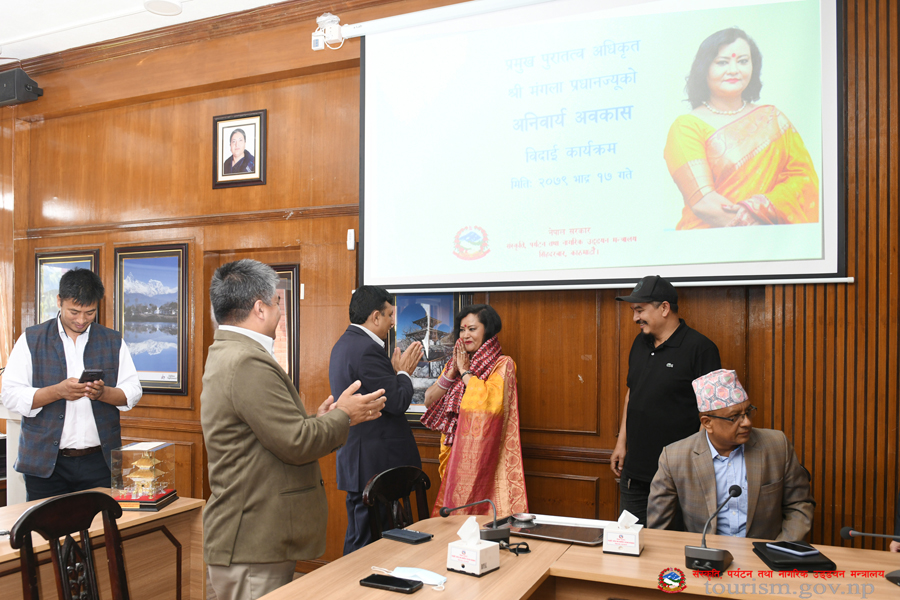 संस्कृति, पर्यटन तथा नागरिक उड्डयन मन्त्रालयका प्रमुख पुरातत्व अधिकृत श्री मंगला प्रधानज्यूको विदार्इ कार्यक्रमका तस्वीरहरु(२०७९-०५-१७)