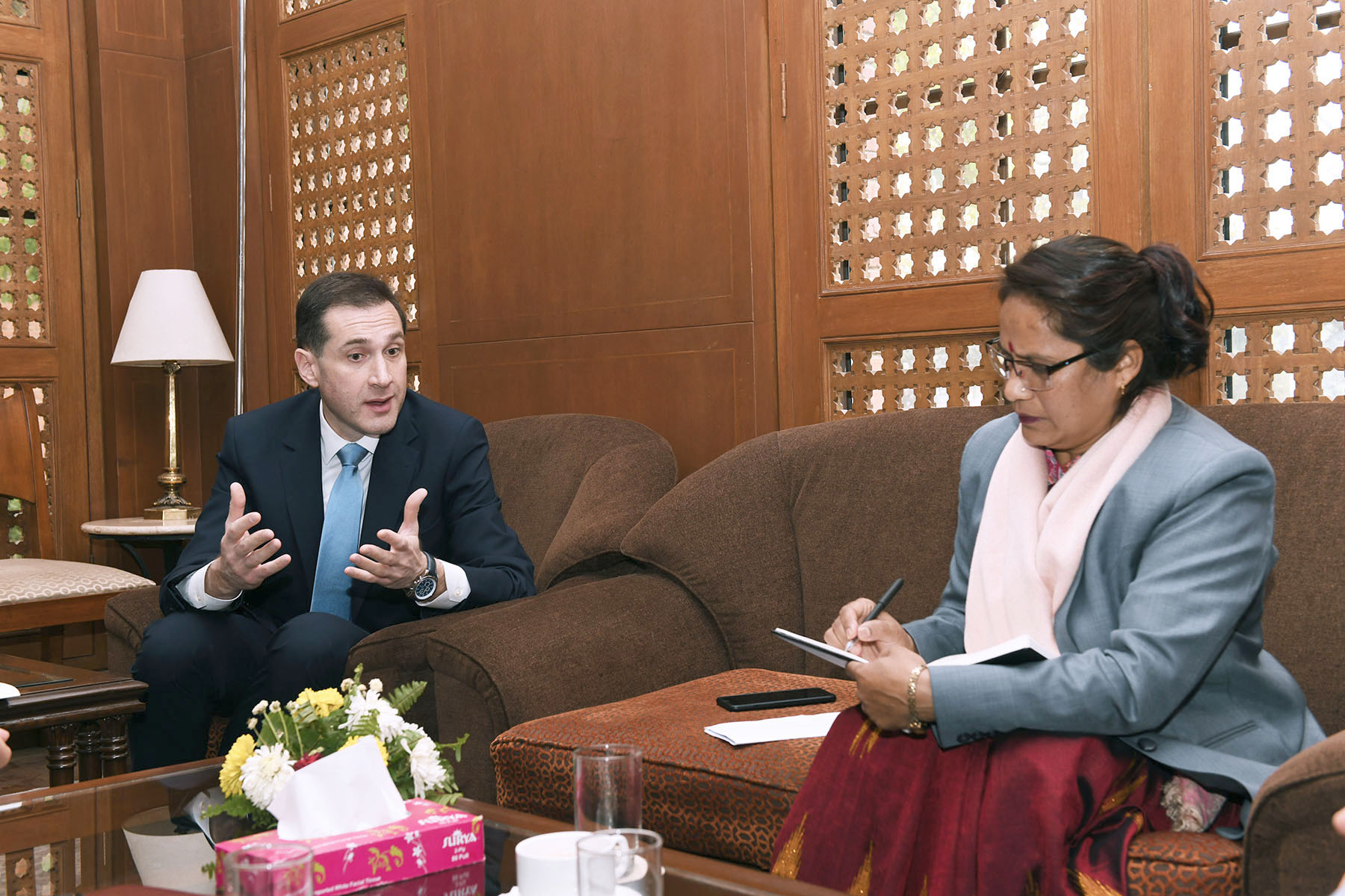माननीय मन्त्री अनिल कुमार सिन्हाज्यूसँग नेपालका लागि युरोपियन युनियनका राजदुत H.E. Mrs. Veronique Lorenzo ले यस मन्त्रालयमा गर्नुभएको भएको शिष्टाचार भेटघाट सम्बन्धी प्रेस विज्ञप्ति।