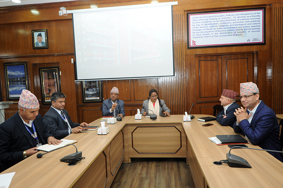 संस्कृति, पर्यटन तथा नागरिक उड्डयन राज्यमन्त्री माननीय सुशिला सिर्पाली ठकुरीज्यूको समुपस्थितिमा बसेको कर्मचारी बैठकका तस्वीरहरु (२०७९-१२-२१)