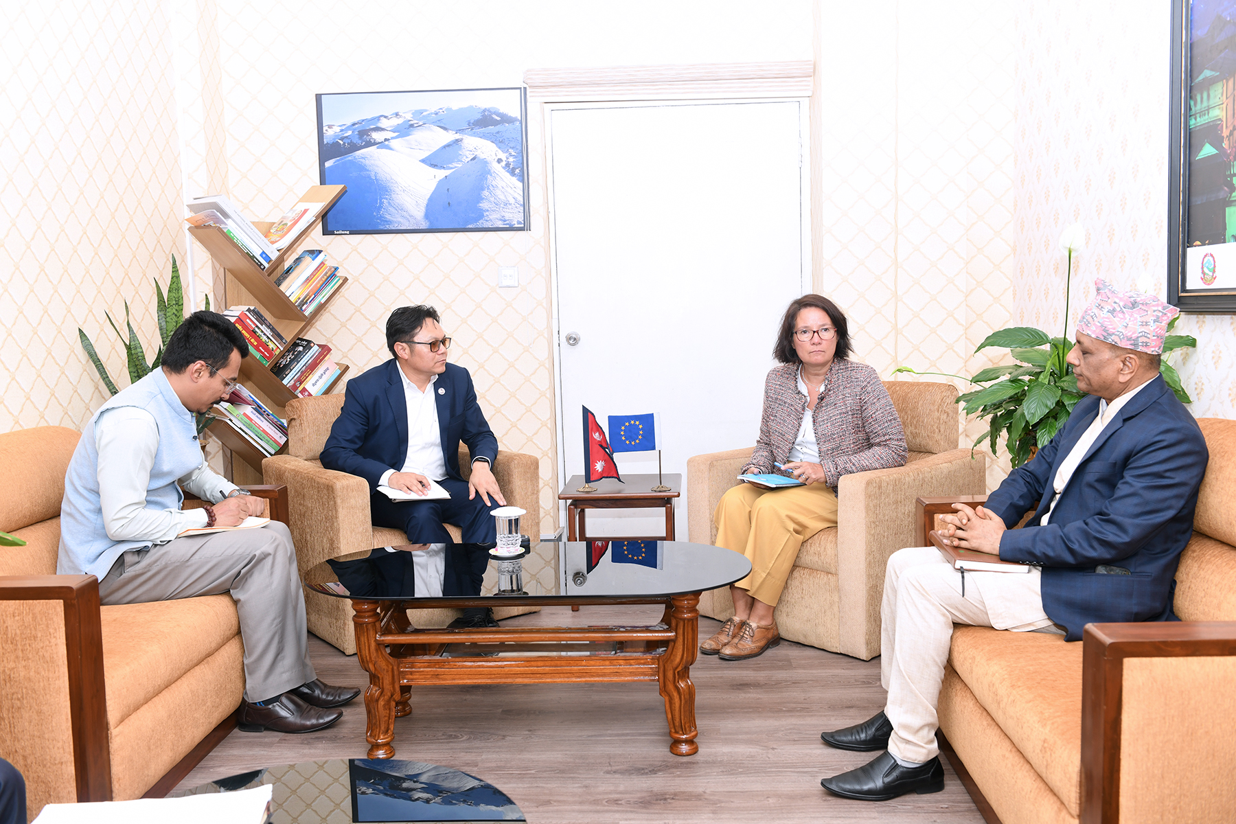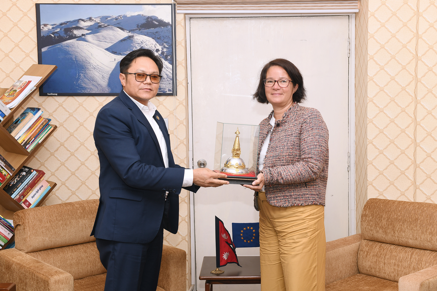 संस्कृति, पर्यटन तथा नागरिक उड्डयन मन्त्री माननीय सुदन किरातीसँग नेपालका लागि ईयू प्रतिनिधिमण्डलका राजदूत H.E. Ms. Nona Deprez को शिष्टाचार भेटका तस्वीरहरु (२०८०-०४-०१)