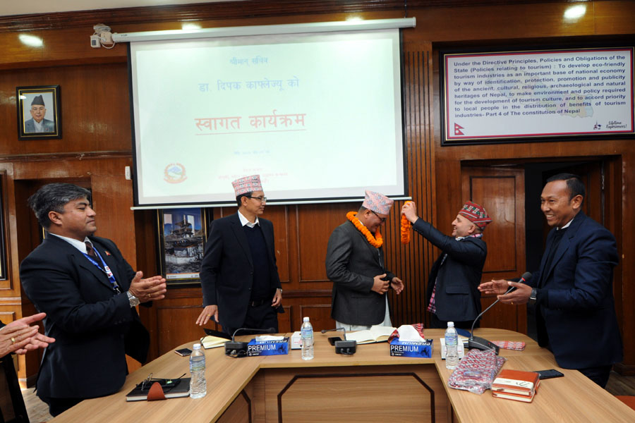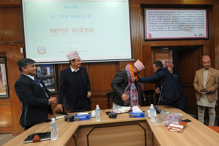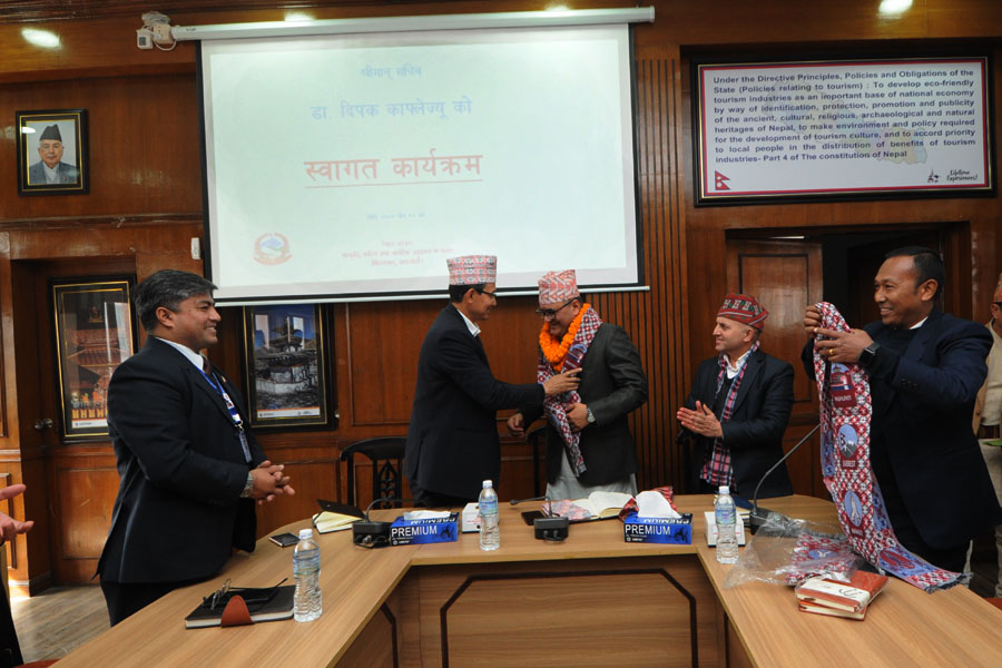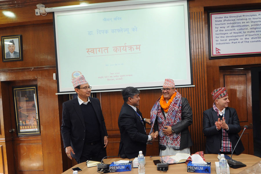 श्रीमान सचिव डा. दिपक काफ्लेज्यूको स्वागत एवम् पद बहाली कार्यक्रमका तस्वीरहरु (२०८०-०९-०४)