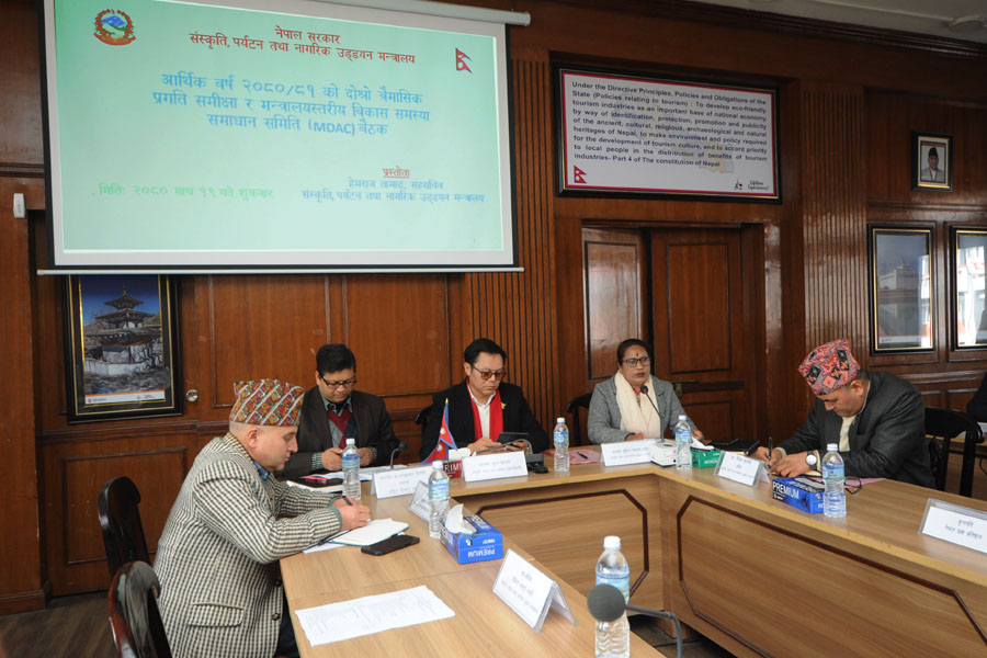 आ.व.२०८०/८१ को दोस्रो त्रैमासिक प्रगति समीक्षा र मन्त्रालयस्तरीय विकास समस्या समाधान समिति (MDAC) को बैठकका तस्वीरहरु (२०८०-१०-१९)