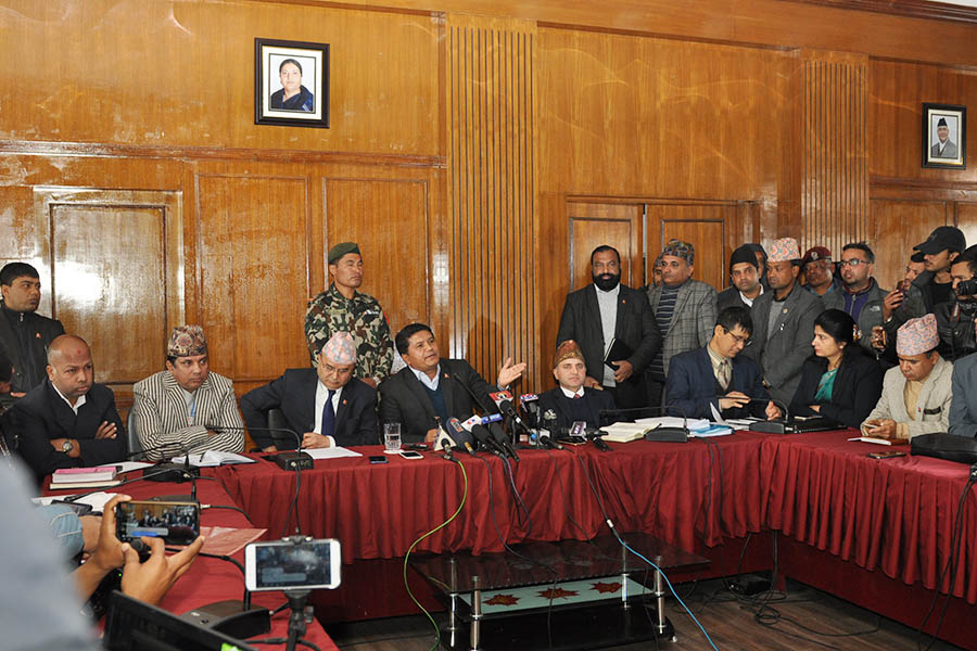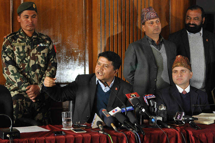 माननीय मन्त्री श्री रविन्द्र अधिकारीज्यूले नेपाल वायुसेवा निगमले खरिद गरेको वाइडबडी जहाज बारे उठेका समसामयिक विषय माथि पर्यटन मन्त्रालयमा भएको पत्रकार सम्मेलनको तस्वीर(२०७५-०९-२३)