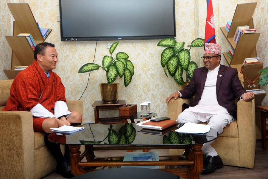 सस्कृति, पर्यटन तथा नागरिक उड्डयन मन्त्री माननीय बद्री प्रसाद पाण्डेज्यू र श्रीमान सचिव डा. गणेशप्रसाद पाण्डेयज्यूसँग भुटानका गृह सचिव H.E. Mr.Sonam Wangyel को शिष्टाचार भेटका तस्वीरहरु।(२०८१-०७-०५)।
