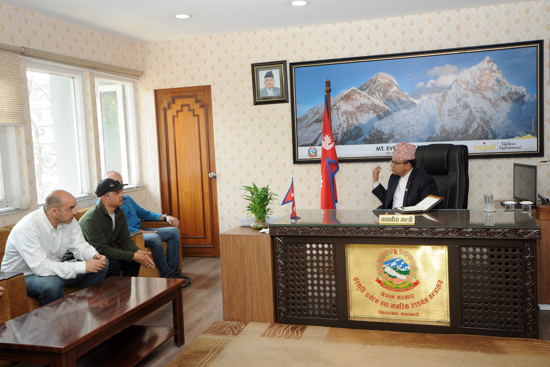संस्कृति, पर्यटन तथा नागरिक उड्डयन मन्त्री माननीय श्री बद्री प्रसाद पाण्डेसँग इटालीको फेर्मो शहरका मेयर Paolo Calcinaro सहितको प्रतिनिधि मण्डलको शिष्टाचार भेटका तस्वीहरु (२०८२।०१।०२) संस्कृति, पर्यटन तथा नागरिक उड्डयन मन्त्री माननीय श्री बद्री प्रसाद