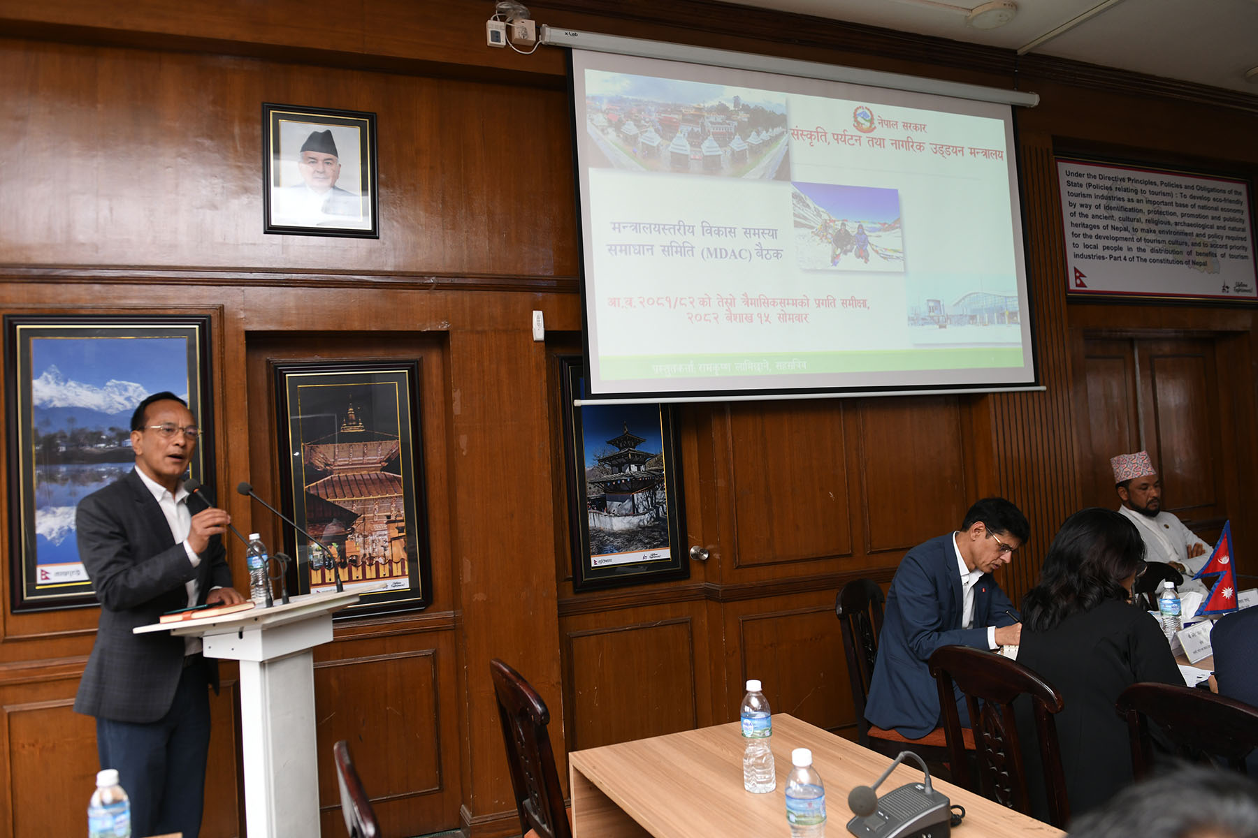 आ.व.२०८१/८२ को तेस्रो त्रैमासिक प्रगति समीक्षा र मन्त्रालयस्तरीय विकास समस्या समाधान समिति (MDAC) को बैठकका तस्वीरहरु (२०८१-०१-१५)