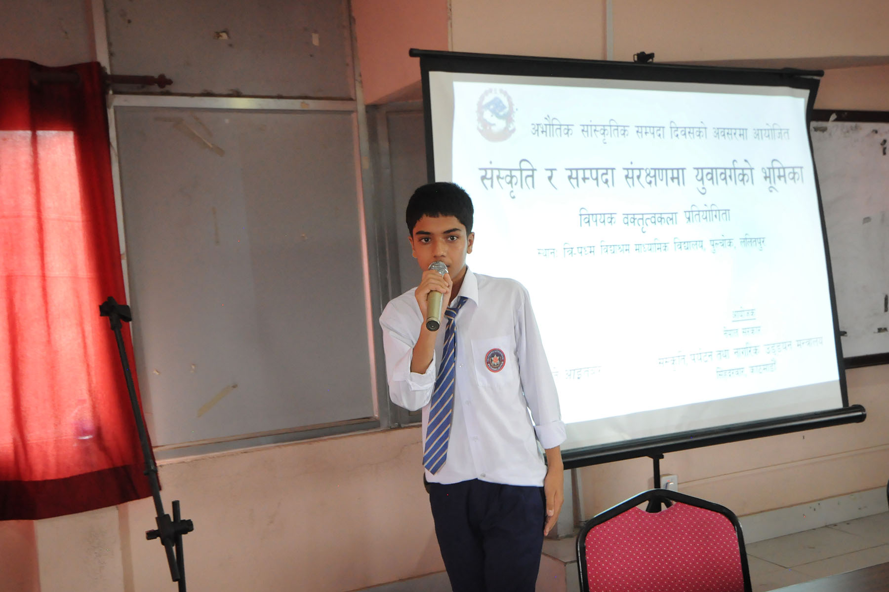 अभौतिक सांस्कृतिक सम्पदा दिवसको अवसरमा मन्त्रालयद्धारा आयोजित संस्कृति र सम्पदा संरक्षणमा युवावर्गको भुमिका बिषयक वक्तृत्वकला प्रतियोगिता कार्यक्रमका तस्वीरहरु(२०८२।०३।०१)
