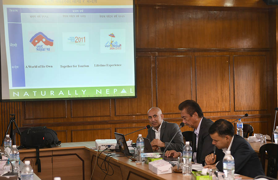 माननीय संस्कृति, पर्यटन तथा नागरिक उड्डयन मन्त्रीज्यूको उपस्थितिमा नेपाल भ्रमण बर्ष २०२० को सन्दर्भमा संसदीय मैत्री संयोजक माननीयहरुसँगको बैठकका - तस्वीर(२०७६-५-२९)
